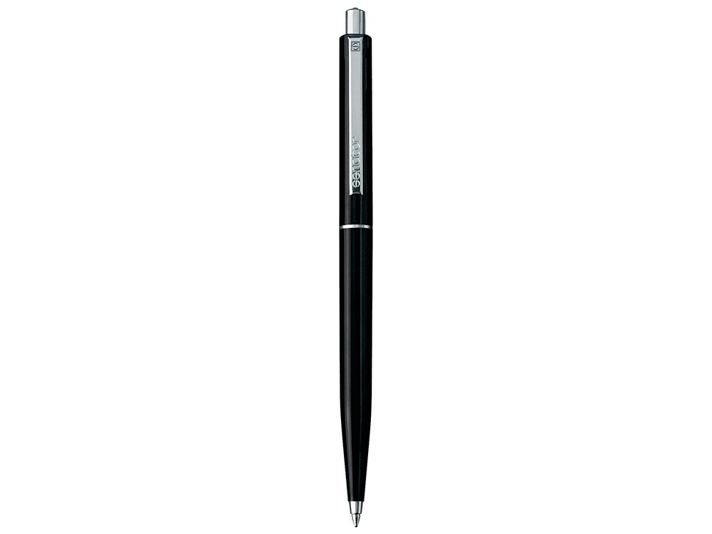 Шариковая авторучка с металлическими деталями. Металлическая кнопка с цветным пластиковым декором в цвет корпуса.