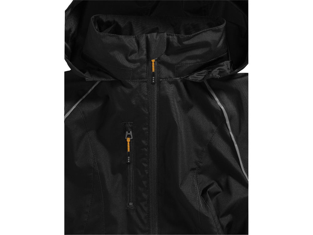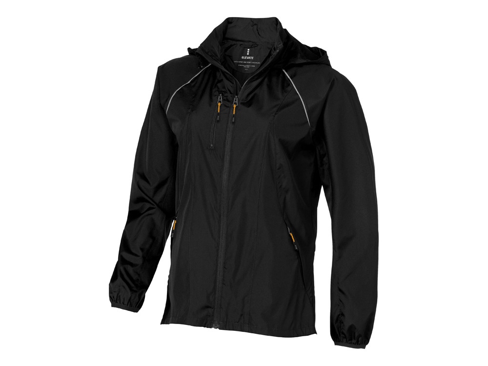 Женская складная куртка Nelson. Стандартный покрой. Складной капюшон в воротнике. Отражающие детали. Молния легкого скольжения. Спрятанные карманы для рук на молнии. Эластичные манжеты. Складывается в карман. 240T, 100% полиэстер с водостойким покрытием и водоотталкивающей отделкой.