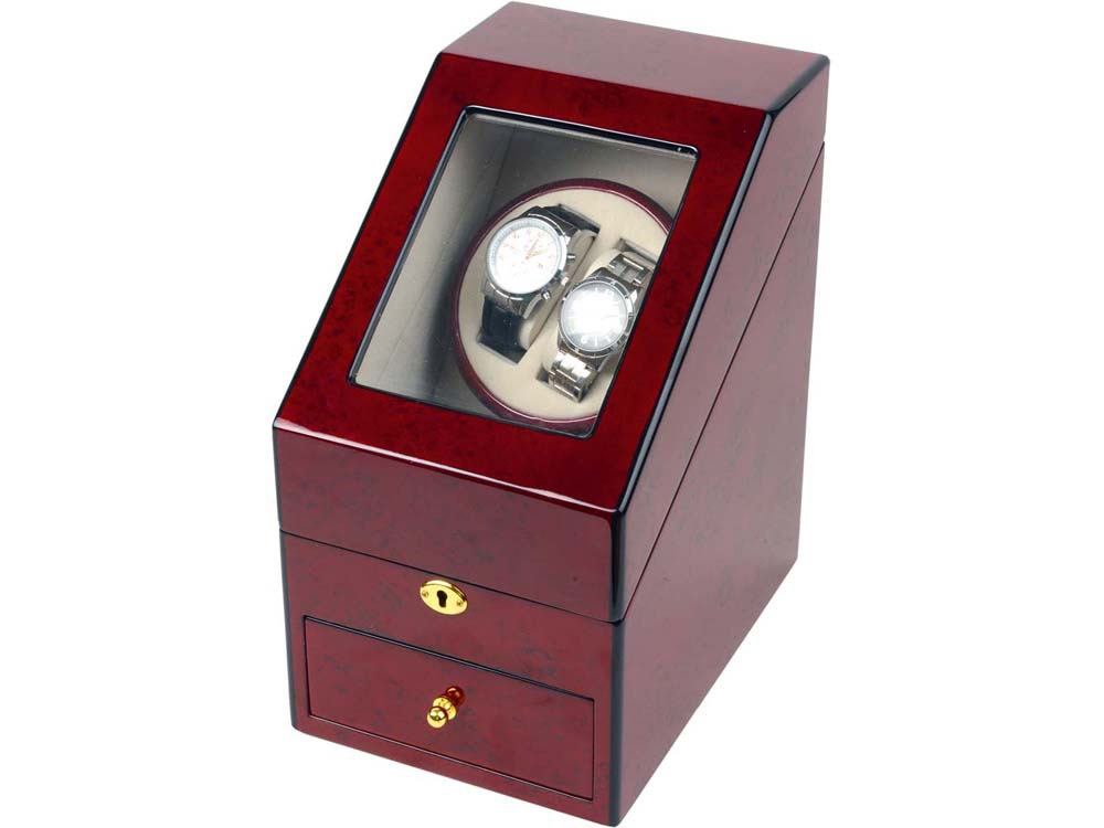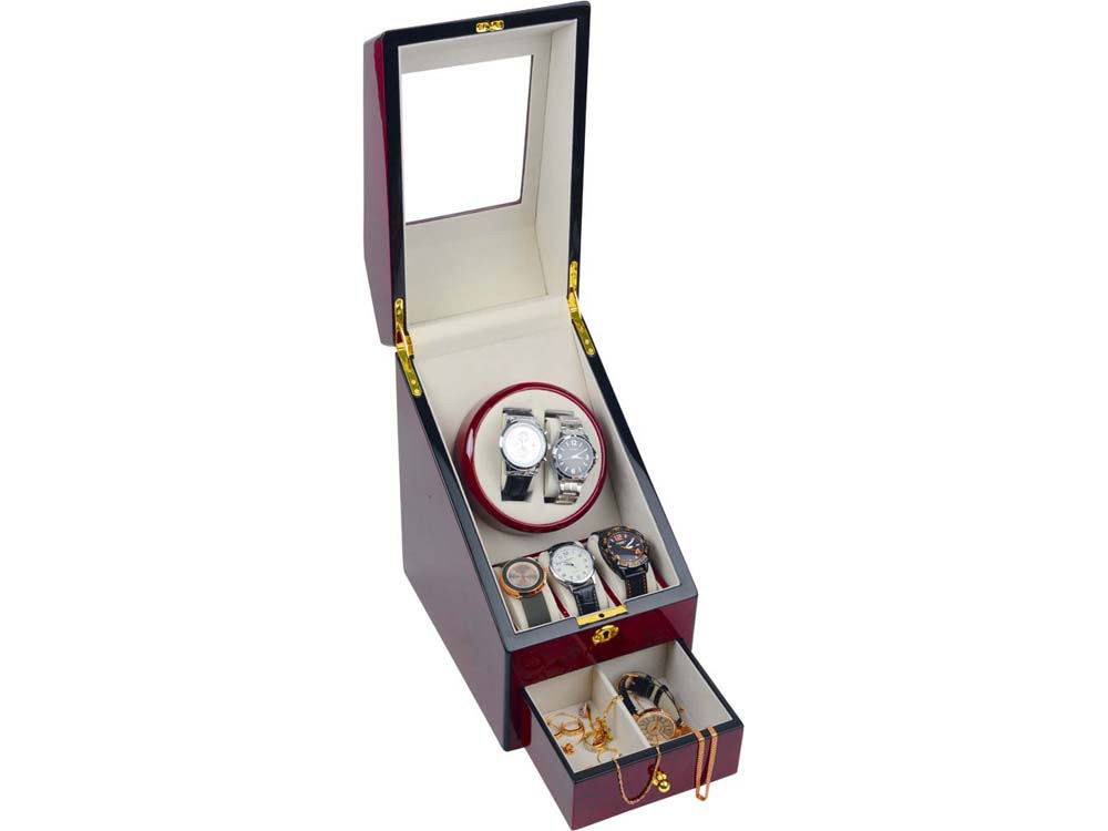 Отличная шкатулка для хранения часов оснащена небольшим ящичком для украшений и драгоценностей. Выполненная из ценных пород красного дерева, шкатулка подчеркнет статус обладателя. Превосходный подарок для женщин и мужчин.