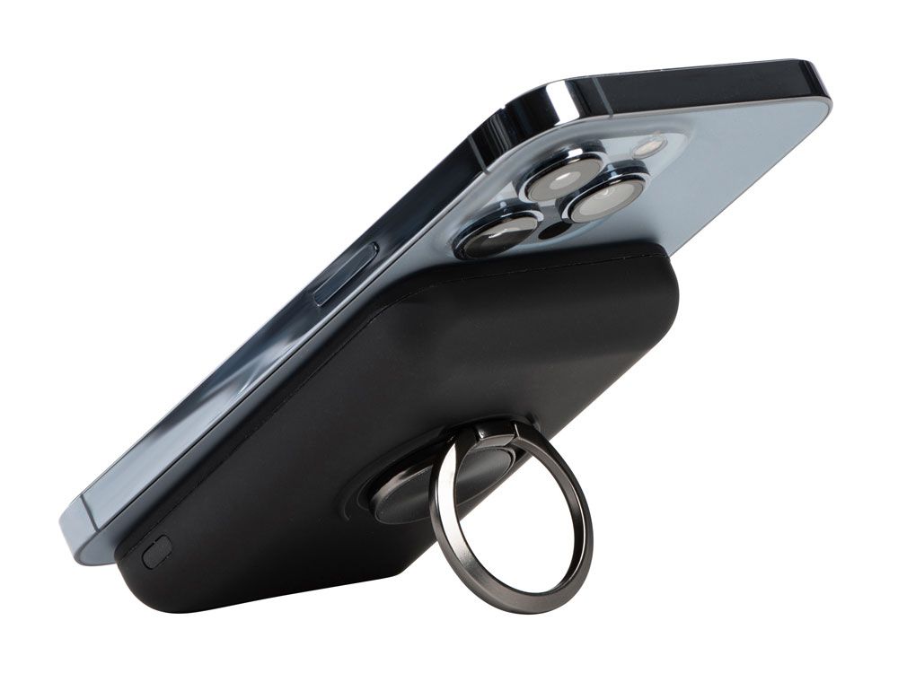 MagnetIQ надежно крепится к iPhone 12,13,14 версий при помощи сильных встроенных магнитов и заряжает по быстрой беспроводной зарядке 10 Вт. Также пауэрбэнк быстро заряжается по двойному USB-C кабелю из комплекта (при наличии USB-C сетевого адаптера мощностью от 18 Вт), и может заряжать быстро другие устройства по USB-C и USB-A портам. Внешний аккумулятор имеет встроенный металлический держатель-подставку на задней стороне, благодаря чему удобно держать заряжаемый смартфон в руках или устанавливать смартфон на рабочем столе. В комплекте есть металлическое кольцо для беспроводной зарядки смартфонов без встроенных магнитов. В базовой комплектации - двунаправленный кабель USB-C с поддержкой быстрой зарядки и кабель для проводной зарядки iPhone USB - Lightning. • быстрая зарядка 20 Вт по USB-C "себя" и заряжаемых устройств • сильные магниты для беспроводной зарядки по технологии MagSafe с iPhone 12,13,14 версий • компактный, не перекрывает камеры смартфонов • металлический держатель-подставка в форме кольца