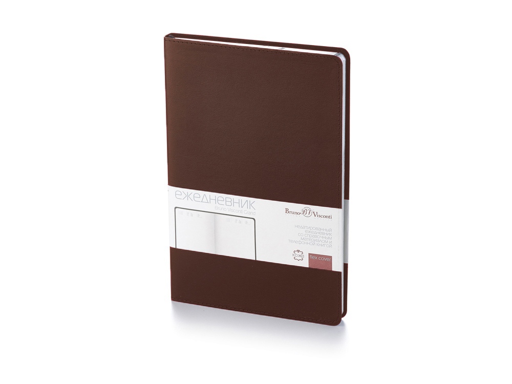 Строгая закругленная обложка выполнена из рециклированной кожи. Интегральный переплет. Реальный шов по периметру в цвет материала Матовая поверхность кожи с мелким рельефом – идеальная основа для тиснения. Недатированный ежедневник формата А5 соответствует размеру 142 х 215 мм. Внутренний блок состоит из 272 страниц , качественная бежевая бумага, плотностью 70 грамм. Помимо рабочих страниц в структуру включен справочный раздел (10 первых страниц). Стильная двойная закладка-ляссе украшена металлическим шильдом серебристого цвета.