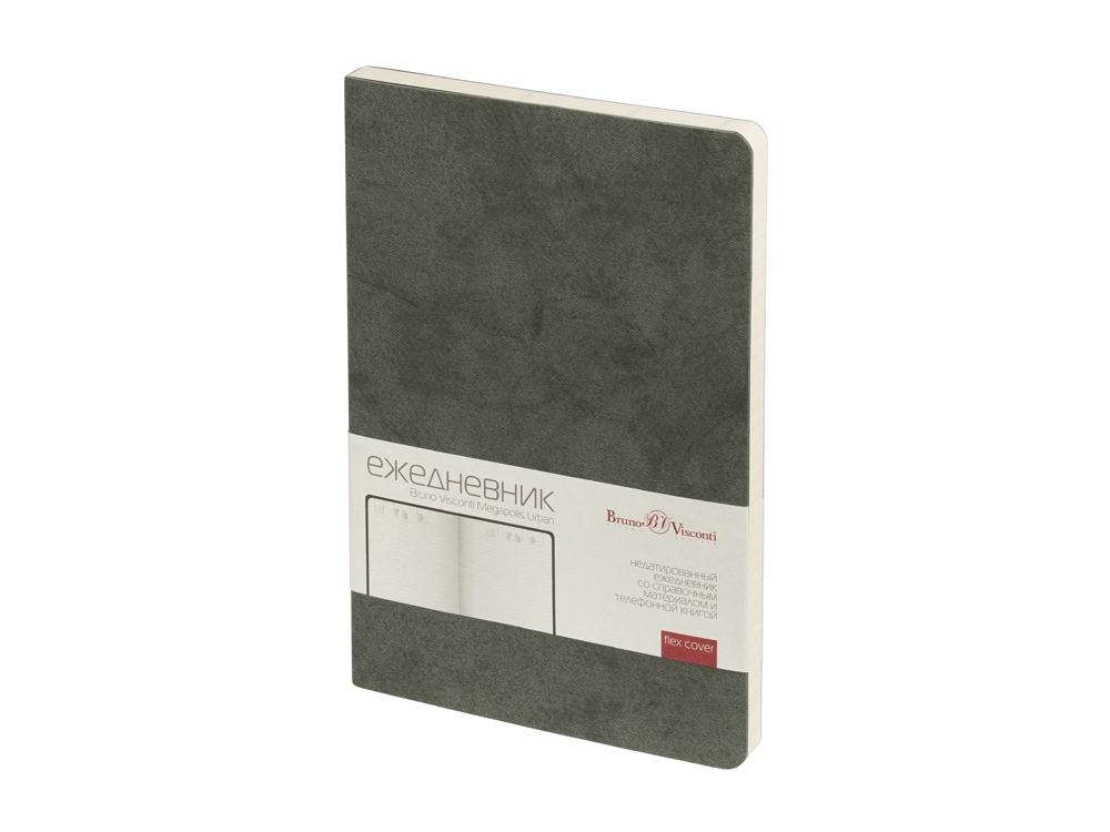 Недатированный ежедневник MEGAPOLIS URBAN формата А5 от Bruno Visconti идеален для тех, кто живет в ритме современного города, кому важны мобильность, удобство, качество. Оригинально и в тоже время ультрасовременно выглядит ежедневник благодаря своей визитной карточке - гибкая обложка из высококачественной экокожи с имитацией фактурной ткани. При производстве внутреннего блока использовалась бумага бежевого цвета плотностью 70 г/кв.м. Блок содержит 272 страницы и имеет несколько разделов. Раздел для планирования имеет линовку серого цвета с указанием времени (интервалы в один час). В дополнение к нему - раздел со справочной информацией на 19 страницах и телефонная книга на 26 страницах.