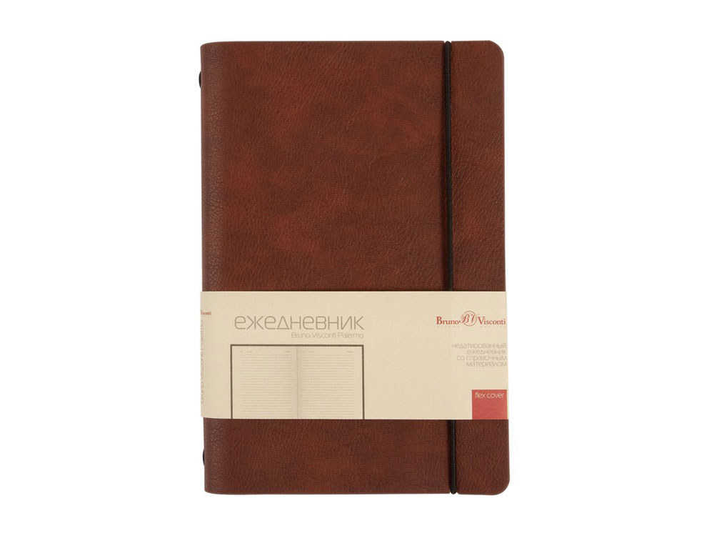 Недатированный ежедневник Bruno Visconti «Palermo» формата А5 с гибкой (flex) обложкой – практичный помощник в деле планирования рабочего времени для деловых людей, живущих в ритме мегаполиса. Отличительной особенностью ежедневника является горизонтальная, скрепляющая обложку и блок, тоненькая резинка. Оригинальное решение позволяет раскрывать ежедневник на 180 градусов и вести записи у самого края корешка. Для фиксации второй резинки, не позволяющей ежедневнику раскрываться, предусмотрена выемка на обложке. Обложка тонка, но фактурность придает ей элемент брутальности, а бархатистое нанесение на ее оборотной стороне- благородство и статусность. Картонный карман для визиток, записок, бумаг – функциональная деталь и приятная дополнительная опция. Бумажный блок изготовлен из бумаги бежевого цвета, плотностью 70 г/кв.м и содержит 272 страницы, 23 из которых справочная информация.