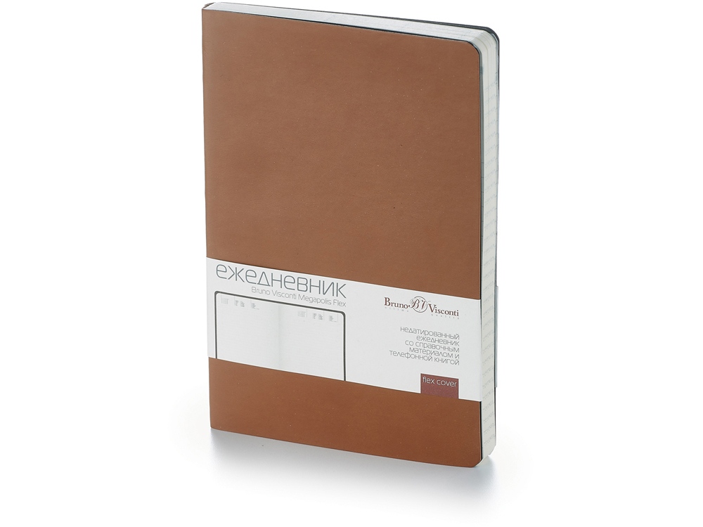 Недатированный ежедневник «Megapolis Flex» от бренда Bruno Visconti - это качественный корпоративный подарок по выгодной цене, произведенный специально под персонализацию. Представлен в универсальном формате А5 и состоит из 272 страниц. Элегантная закругленная flex обложка из гладкого кожзама имеет гибкую конструкцию и приятна на ощупь. А интегральный переплет позволяет сэкономить место в деловой сумке или портфеле – ежедневник можно просто свернуть в трубку или согнуть пополам. В ежедневнике «Megapolis Flex» есть полезная справочная информация и телефонная книга, а также страницы для записи идей, мыслей и составления рабочих планов. Для изготовления страниц используется качественный бежевый офсет повышенной плотности (70 г/кв м). Блок не привязан к конкретным датам – они указываются в выделенном поле вверху страницы. Тонированная бумага не дает глазам утомиться даже при длительной работе. Все ежедневники от бренда Bruno Visconti можно персонализировать с помощью тиснения обложки - золотой или серебрянной фольгой. Наши ежедневники помогут быть успешным и эффективным в карьере и повседневной жизни!