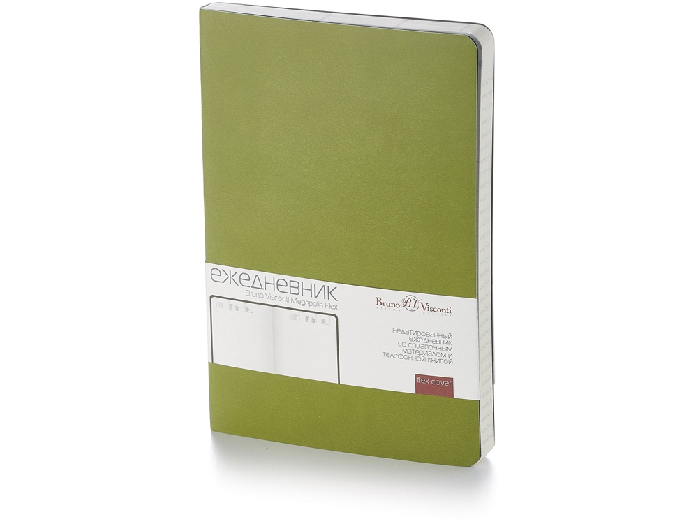 Недатированный ежедневник «Megapolis Flex» от бренда Bruno Visconti - это качественный корпоративный подарок по выгодной цене, произведенный специально под персонализацию. Представлен в универсальном формате А5 и состоит из 272 страниц. Элегантная закругленная flex обложка из гладкого кожзама имеет гибкую конструкцию и приятна на ощупь. А интегральный переплет позволяет сэкономить место в деловой сумке или портфеле – ежедневник можно просто свернуть в трубку или согнуть пополам. В ежедневнике «Megapolis Flex» есть полезная справочная информация и телефонная книга, а также страницы для записи идей, мыслей и составления рабочих планов. Для изготовления страниц используется качественный бежевый офсет повышенной плотности (70 г/кв м). Блок не привязан к конкретным датам – они указываются в выделенном поле вверху страницы. Тонированная бумага не дает глазам утомиться даже при длительной работе. Все ежедневники от бренда Bruno Visconti можно персонализировать с помощью тиснения обложки - золотой или серебрянной фольгой. Наши ежедневники помогут быть успешным и эффективным в карьере и повседневной жизни!