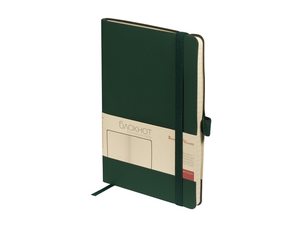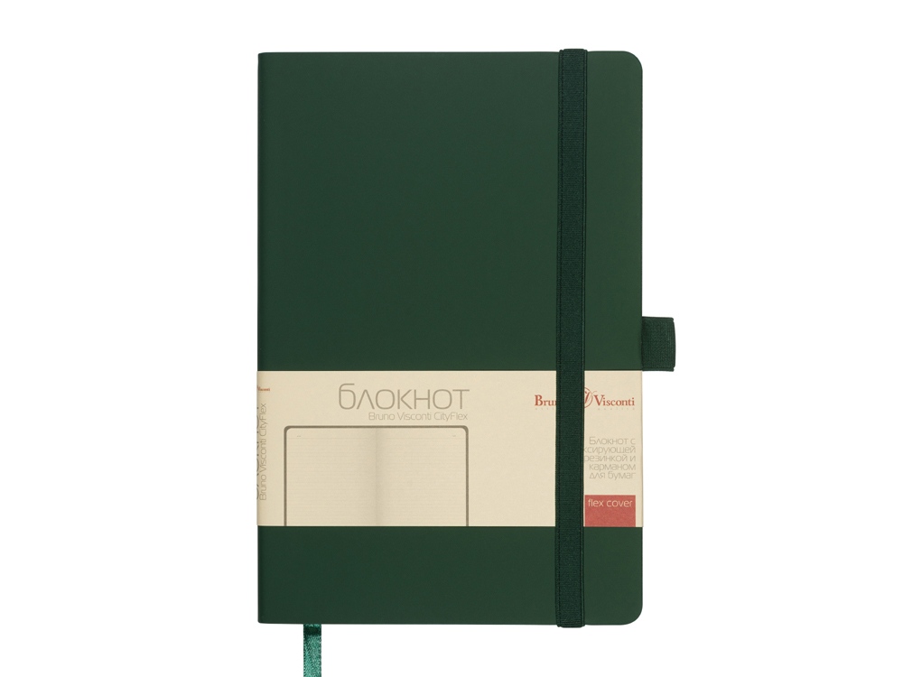Базовая серия офисных блокнотов City Flex от Bruno Visconti формата А5 - функциональный бизнес-аксессуар для ведения рабочих и личных записей. В нем нет ничего лишнего, но благодаря высококачественному переплетному материалу из экокожи и тактильно приятному покрытию Soft Touch он выглядит презентабельно. Гибкая (flex) обложка с углами закругленной формы, фиксирующая резинка и ляссе в цвет обложки, петля для ручки и картонный карман для бумаги на внутренней стороне обложки наделяют блокнот практичностью. 80 листов блока в серую линовку помогают вести записи четко и аккуратно. Блок изготовлен из бежевой бумаги плотностью 70 кв/м.