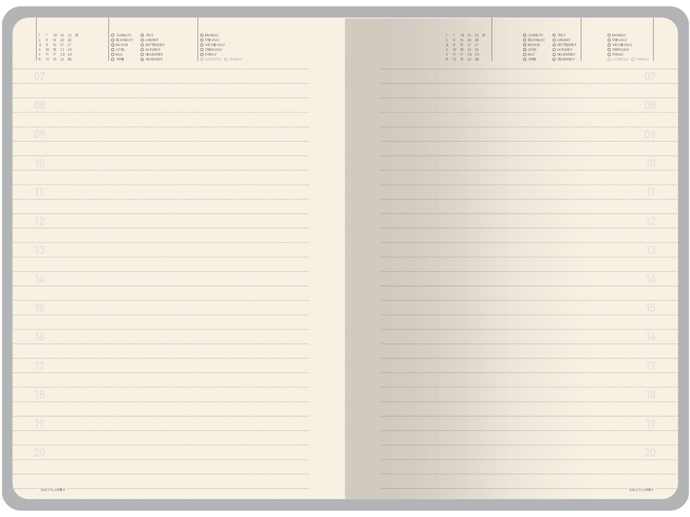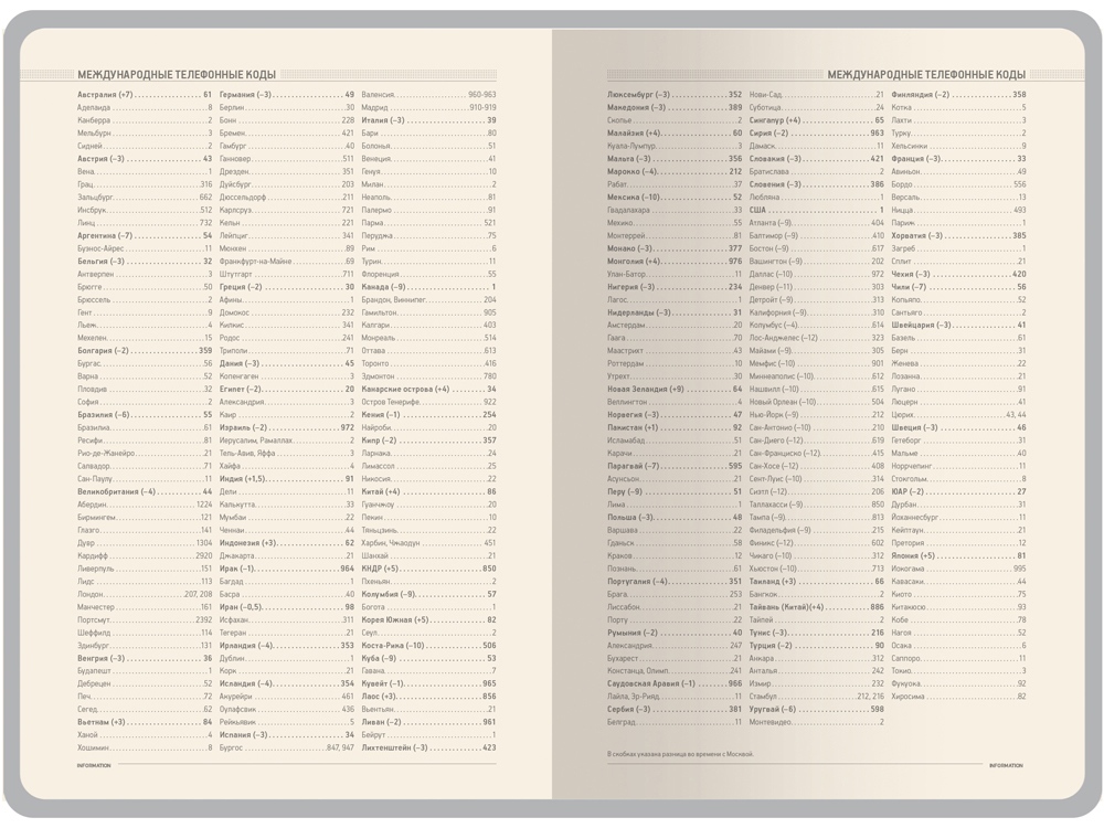Недатированный ежедневник "Megapolis Flex Nebraska" формата А5 - идеальный помощник в деле планирования рабочего времени для тех, кто ценит рационализм и функциональность. Гибкая (flex) обложка из искусственной кожи с благородной глянцевой поверхностью и практичный книжный переплет надежно предохраняют блок от механических повреждений. Серебристый обрез, закругленные углы блока и обложки - верх утилитарности и одновременно икона стиля. Ничего лишнего, ни одной необоснованной детали, и при этом сколько элегантности! Внутренний блок выполнен из бежевой бумаги плотностью 70 г/кв.м и имеет разделы: • для планирования с линовкой и указанием времени с интервалом в один час; • страница для персональных данных; • справочная информация на 19 страницах (аэропорты Европы, штрихкоды, международные телефонные коды, цифровые автомобильные коды, энергетическая и питательная ценность продуктов, национальные и религиозные праздники, единицы измерения, страны мира, размеры одежды, форматы бумаги и др.); • телефонная книга на 19 страницах.
