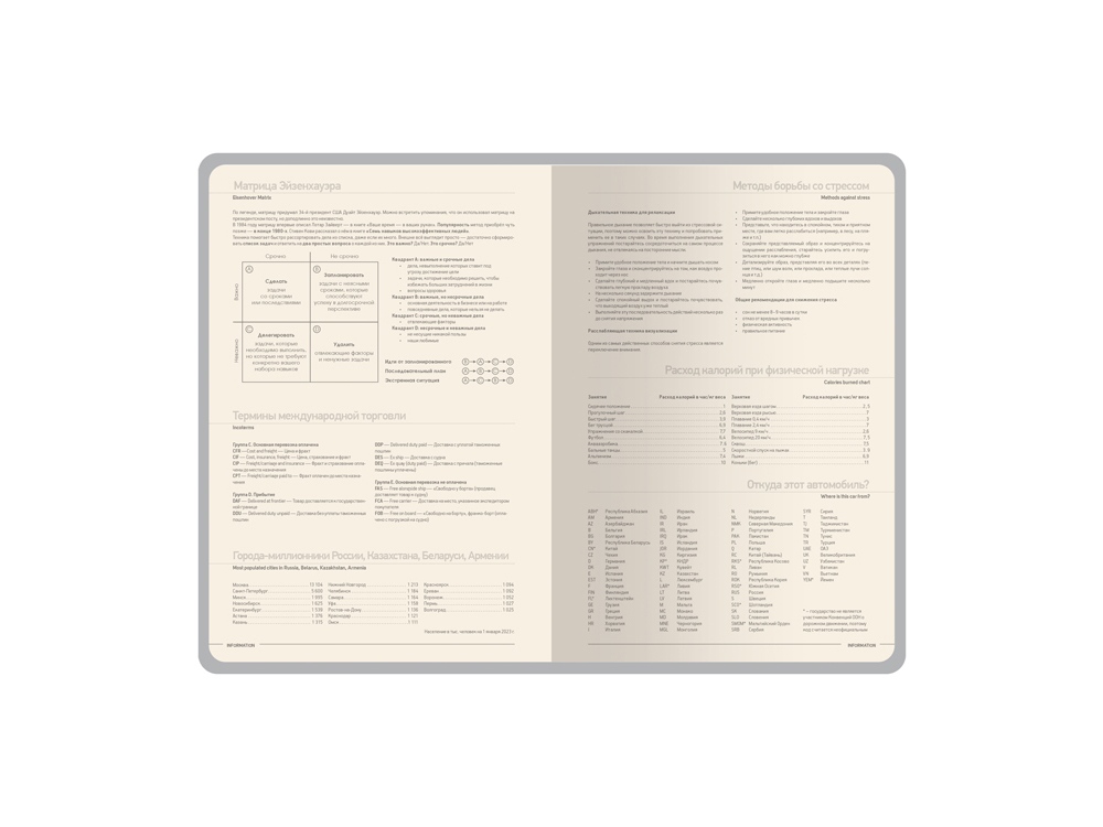 Ежедневник формата А5 «Megapolis Nappa» ТМ Bruno Visconti — для тех, кто предпочитает утилитарные ежедневники с яркими элементами. Двойное ляссе, окрашенный обрез и фактурная искусственная кожа твердой обложки придают этому ежедневнику привлекательности и благородства одновременно. Блок произведен из бежевой бумаги плотностью 70 г/кв.м и помимо раздела для планирования содержит справочную информацию